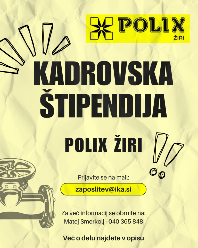 Podjetje Polimix, Žiri, d.o.o. želi s štipendijami omogočiti dijakom ustrezno podporo pri šolanju ter možnost nadaljnjega sodelovanja po končanem izobraževanju.